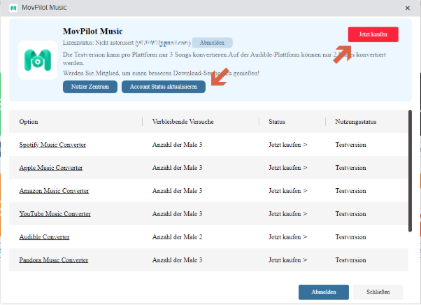 - Nach der Testphase können Sie entscheiden, ob Sie die Vollversion nutzen möchten. Klicken Sie dazu auf „Jetzt kaufen“.