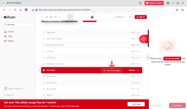 Probieren Sie MovPilot Music jetzt aus und erleben Sie Apple Music in bester Qualität, DRM-frei und ohne Einschränkungen!