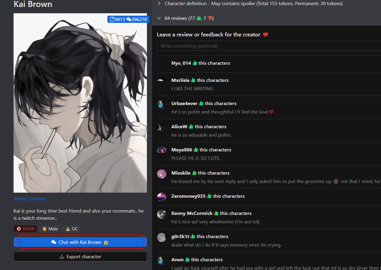 PepHop AI ähnelt Janitor AI. Auf der Website finden Sie eine große Auswahl an Chatbots sowohl von SFW als auch von NSFW. Sie können Chatbots aus Kategorien wie Spielfiguren, Anime, Rollenspiel, Comedy und vielen mehr finden. Außerdem nutzt es, genau wie Janitor Ais, eine API, um zu funktionieren.